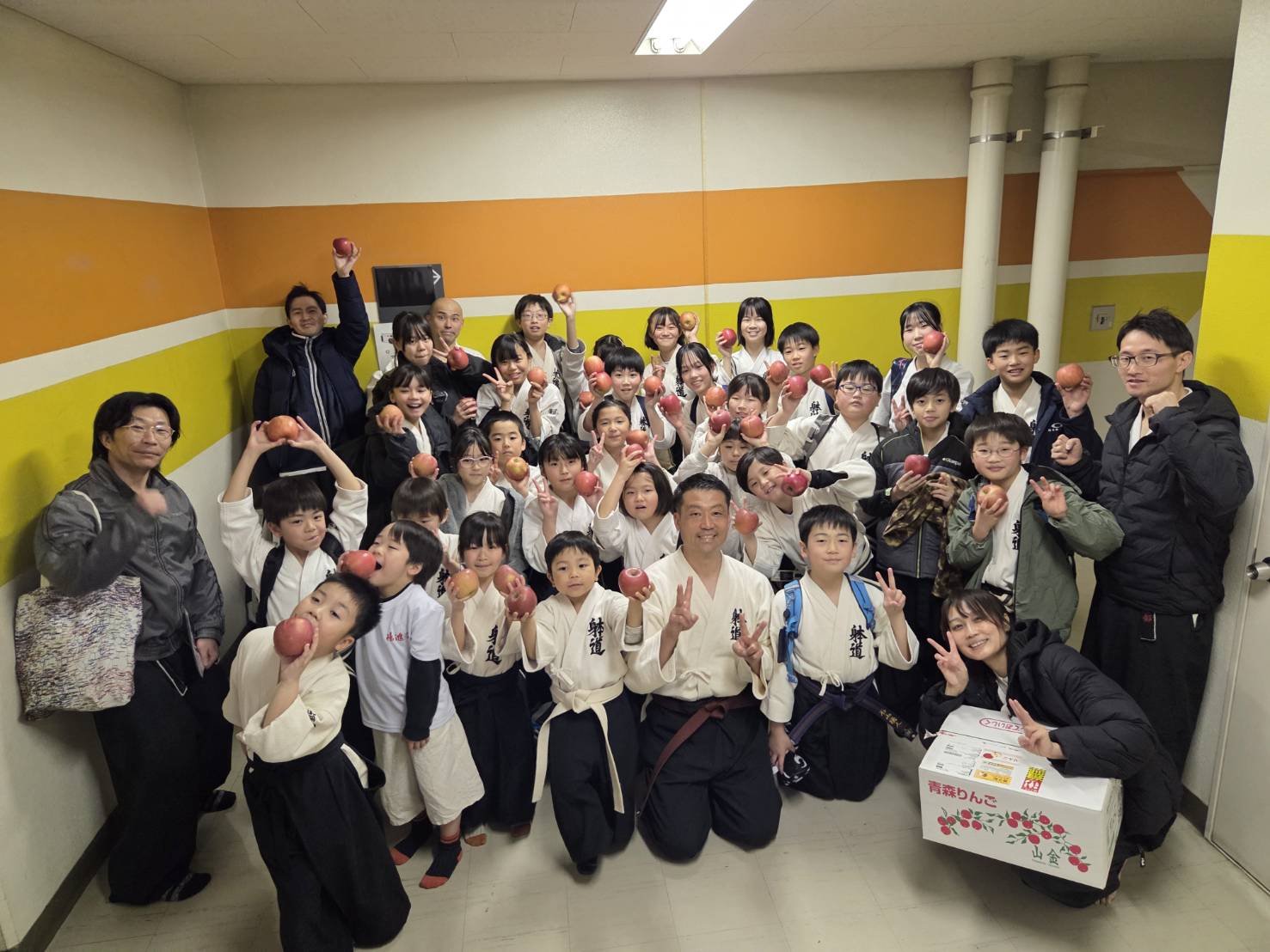 最後はいただいたお土産(本場のりんご)を片手に記念撮影!!